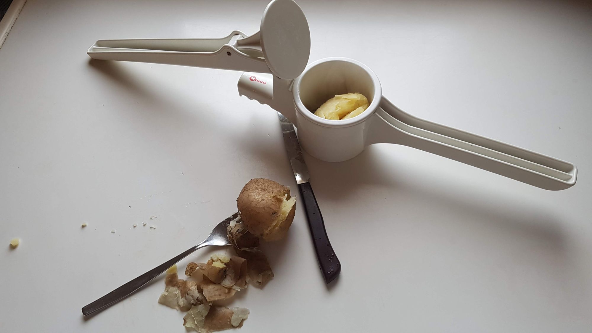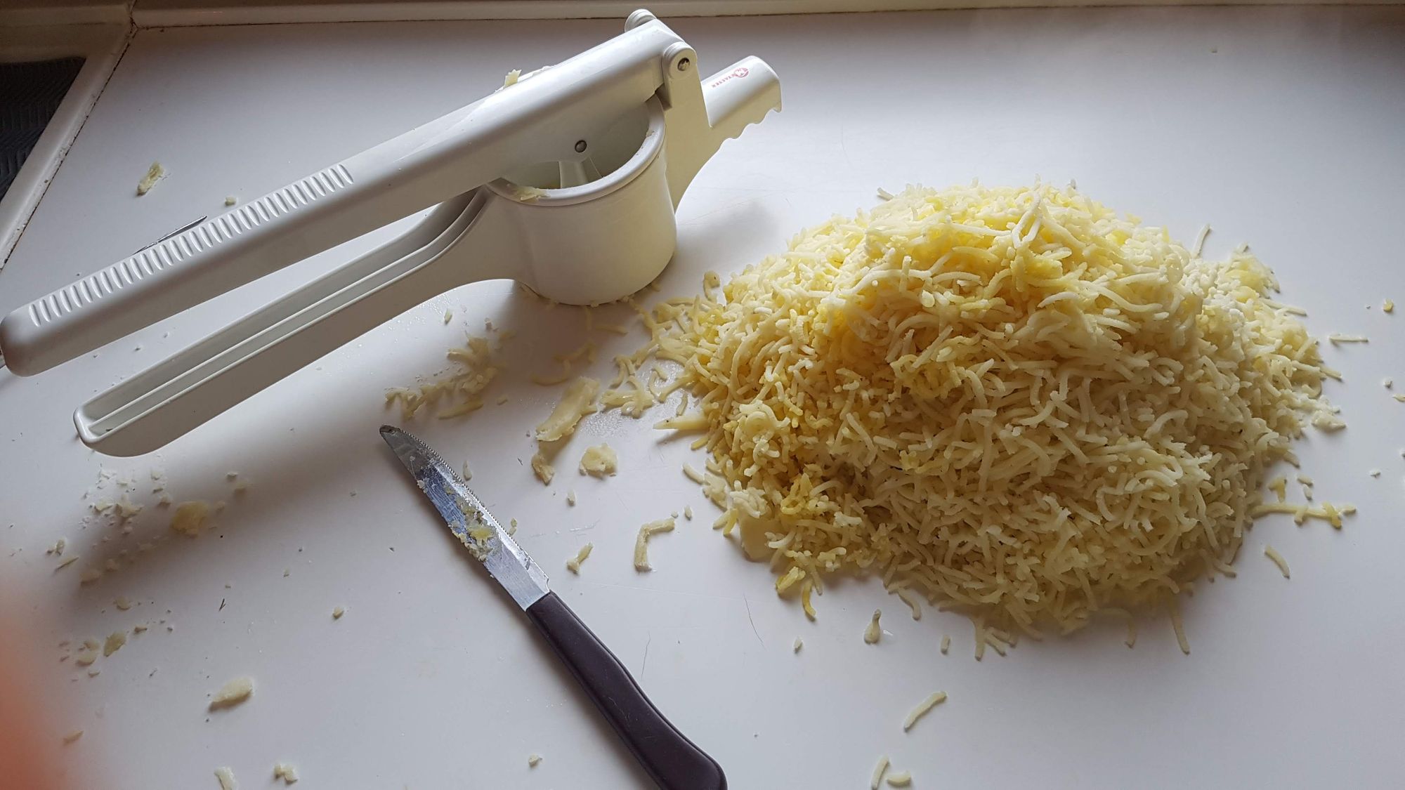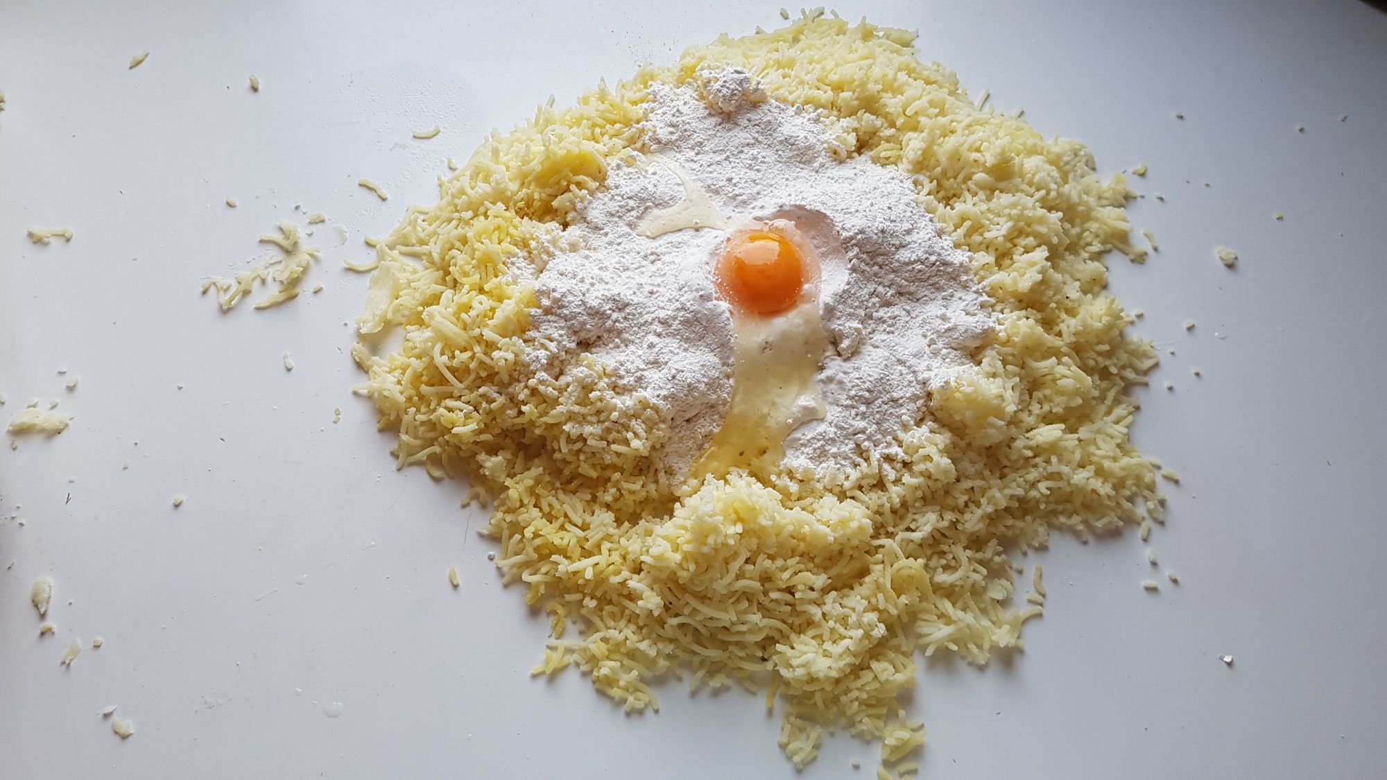 Scegliere patate da gnocchi più farinose. A questi due ingredienti va semplicemente aggiunto del sale ma la mia versione comprende anche l'aggiunta di un uovo.