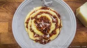Non si deve far altro che cucinare una sorta di polenta morbida che verrà disposta a cucchiaiate sul piatto: il condimento va messo in modo da risultare alternato alla polenta e mescolarsi in parte.