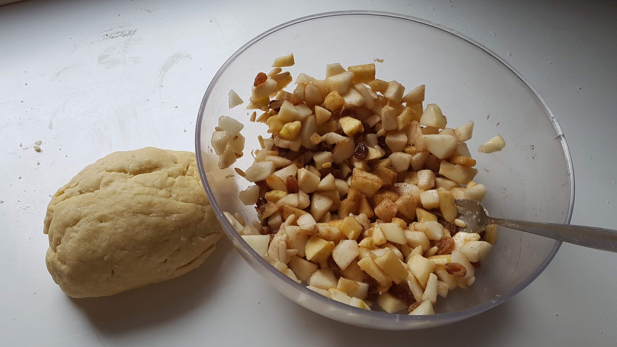 Ingredienti per il ripieno: - mele, pere, pinoli, uvetta ammorbidita nel rum, cannella